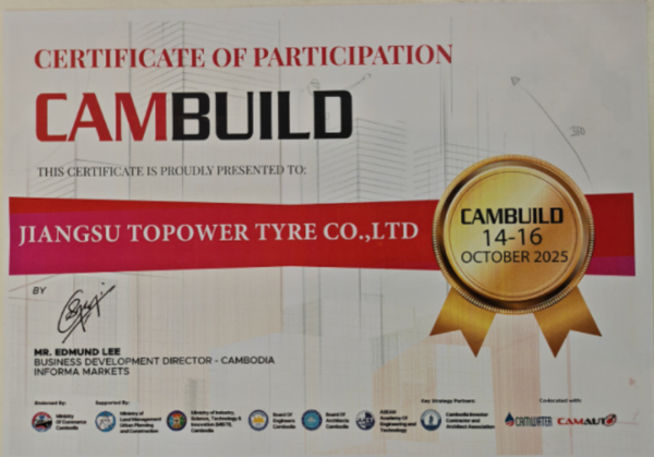 Пномпень, Камбоджа, 16 октября 2025 г. — Компания Jiangsu Topower Tire Co., Ltd. продемонстрировала выдающиеся результаты на CAMBUILD 2025, ведущей международной выставке строительной и инженерной техники в Камбодже, и была удостоена награды «Отличный экспонент». Это признание подчеркивает приверженность компании инновациям, исключительное качество продукции и ее растущее влияние на мировом рынке шин для промышленной и строительной техники.